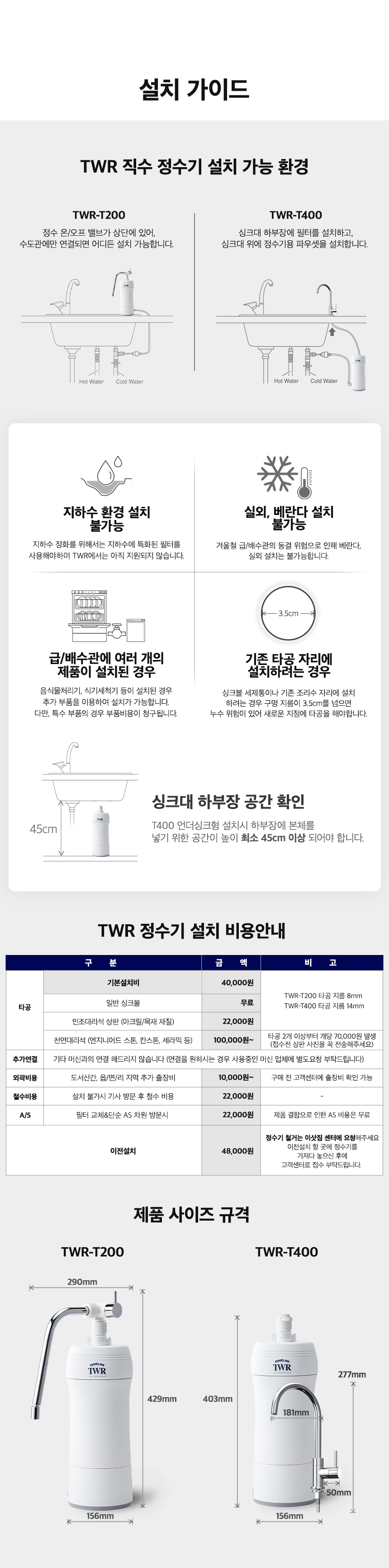 TWR 직수정수기 언더싱크 TWR-T400