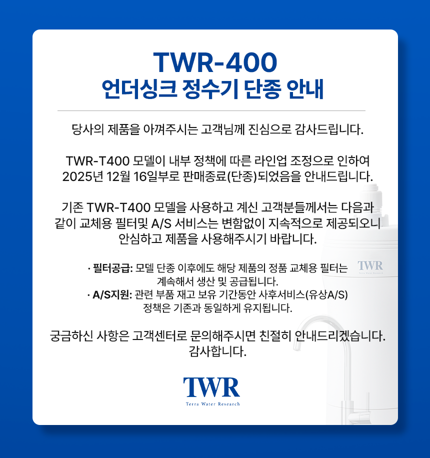 TWR 직수정수기 언더싱크 TWR-T400